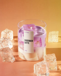 Handcrafted with premium soy and gel wax, this candle features a creamy white base topped with a delicate lavender-colored layer, complemented by translucent gel “ice cubes” for a playful, latte-inspired look.